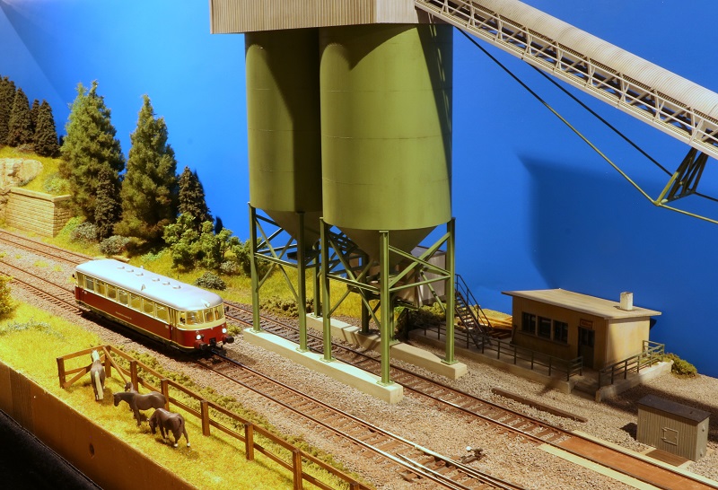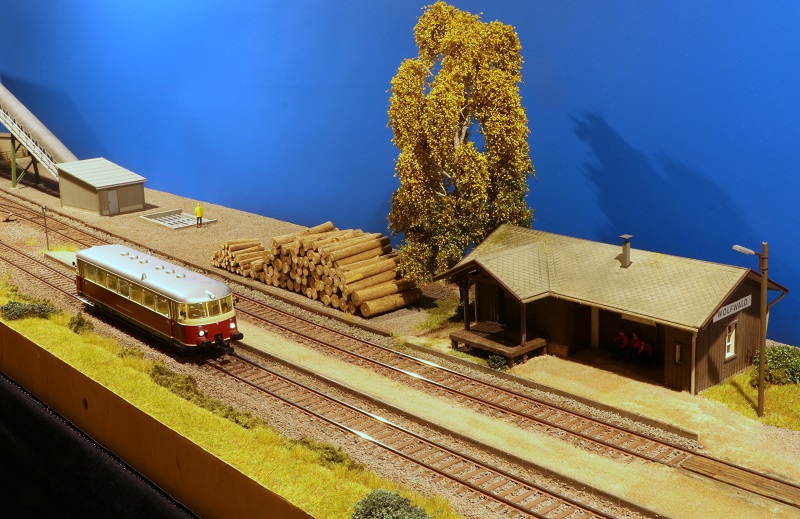 Diese Anlage ist über einen längeren Zeitraum Stück für Stück entstanden. Sie zeigt einen dörflichen Bahnhof abseits der Besiedlung. Eine Bahnsteigkante am Durchfahrtsgleis dient dem spärlichen Personenverkehr. An der Ladestraße wird im Wesentlichen Rundholz verladen. Das Funktionsmodell der Schotterverladung ermöglicht mit seinen beiden Rundsilos die Beladung von Wagen mit Echtsteinschotter. Ein Bahnübergang und eine Blechträgerbrücke über einen Bach bereichern die Szenerie ebenso wie die beiden Tunneleinfahrten, die die Anlage an den Enden abschließen.